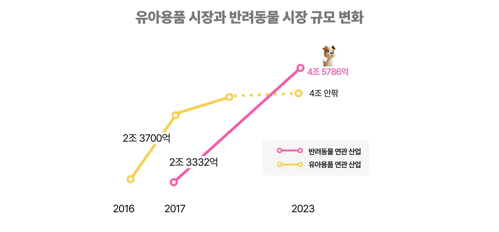 아이보다는 반려동물과 함께하는 삶을 선호하는 가정이 많아지는 시대의 변화가 극명하게 드러나는 소식인데요.