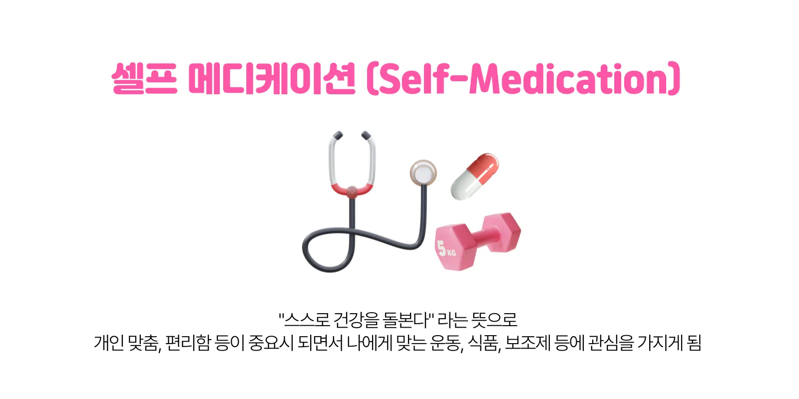 셀프 메디케이션(Self-medication)이란 소비자 스스로 건강을 챙기는 것을 말해요.