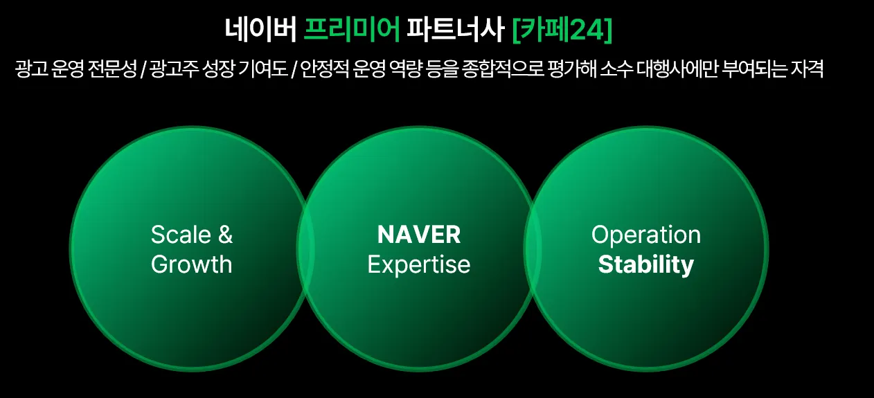 카페24 마케팅센터가 2025 네이버 프리미어 파트너사(NAVER Premier Partner) 로 선정되었습니다.