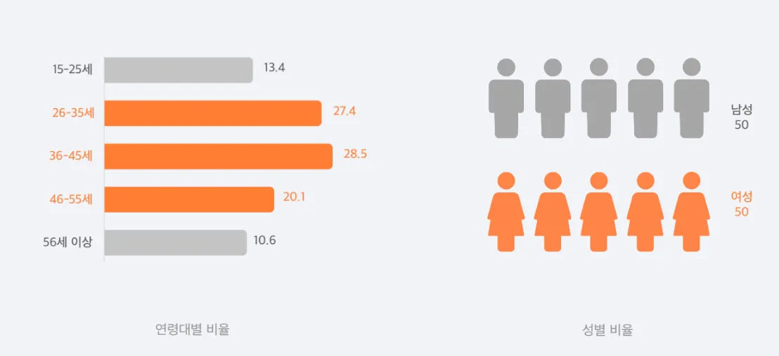 성별 비율은 50:50으로 내가 원하는 타겟은 다 있는 매체라고 볼 수 있겠죠?