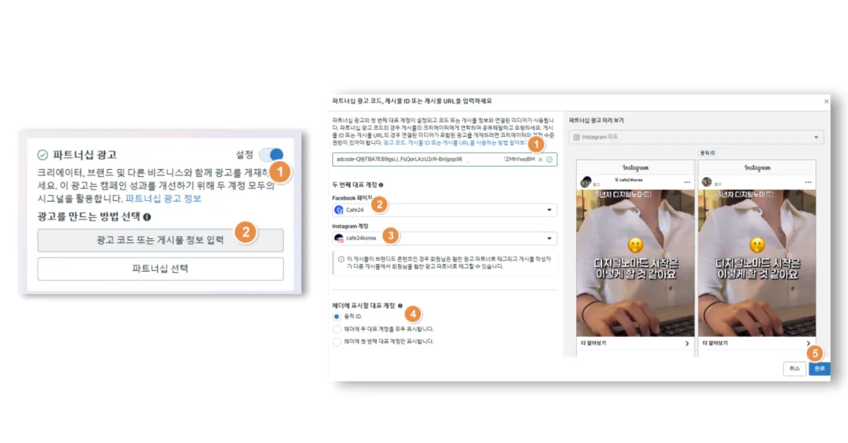 ④ 메타 광고 관리자에서 파트너십 코드 등록