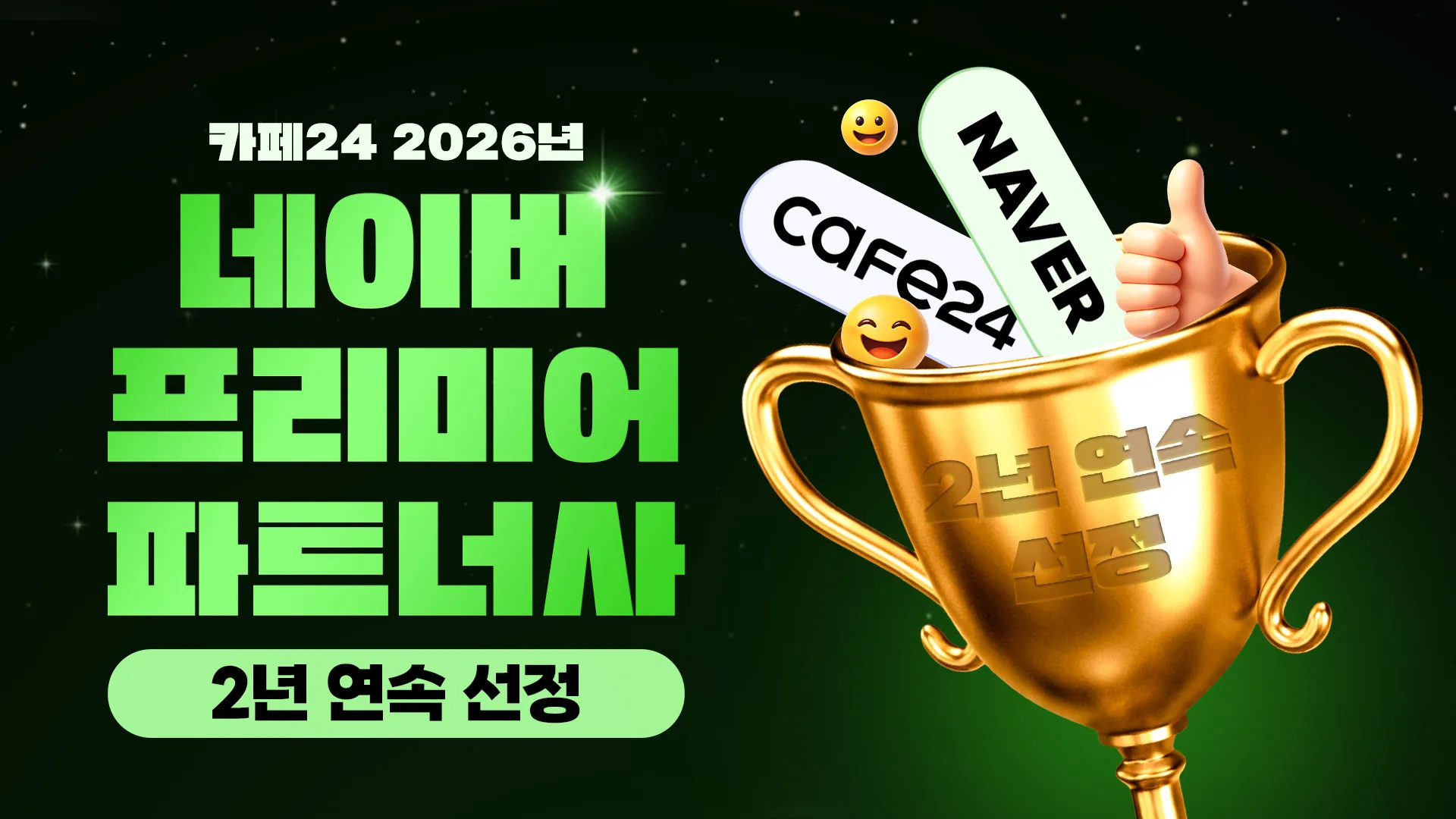 카페24 마케팅센터가 2025년에 이어 2년 연속 네이버 프리미어 파트너사(NAVER Premier Partner)로 선정되었습니다.